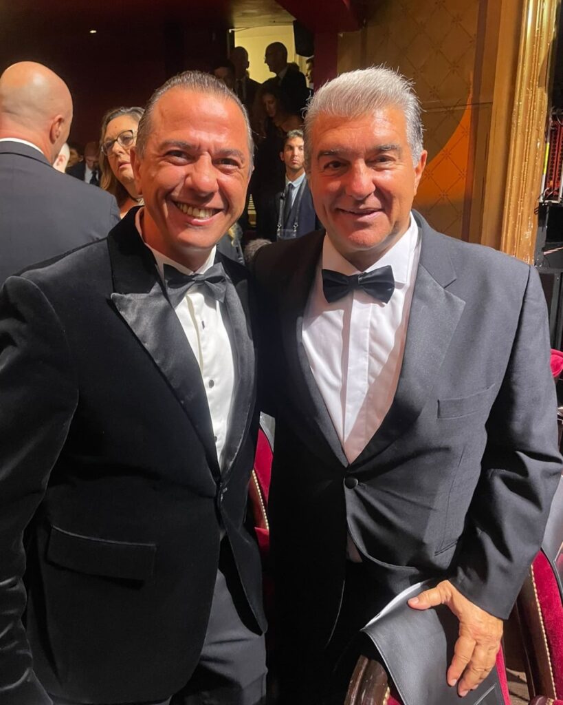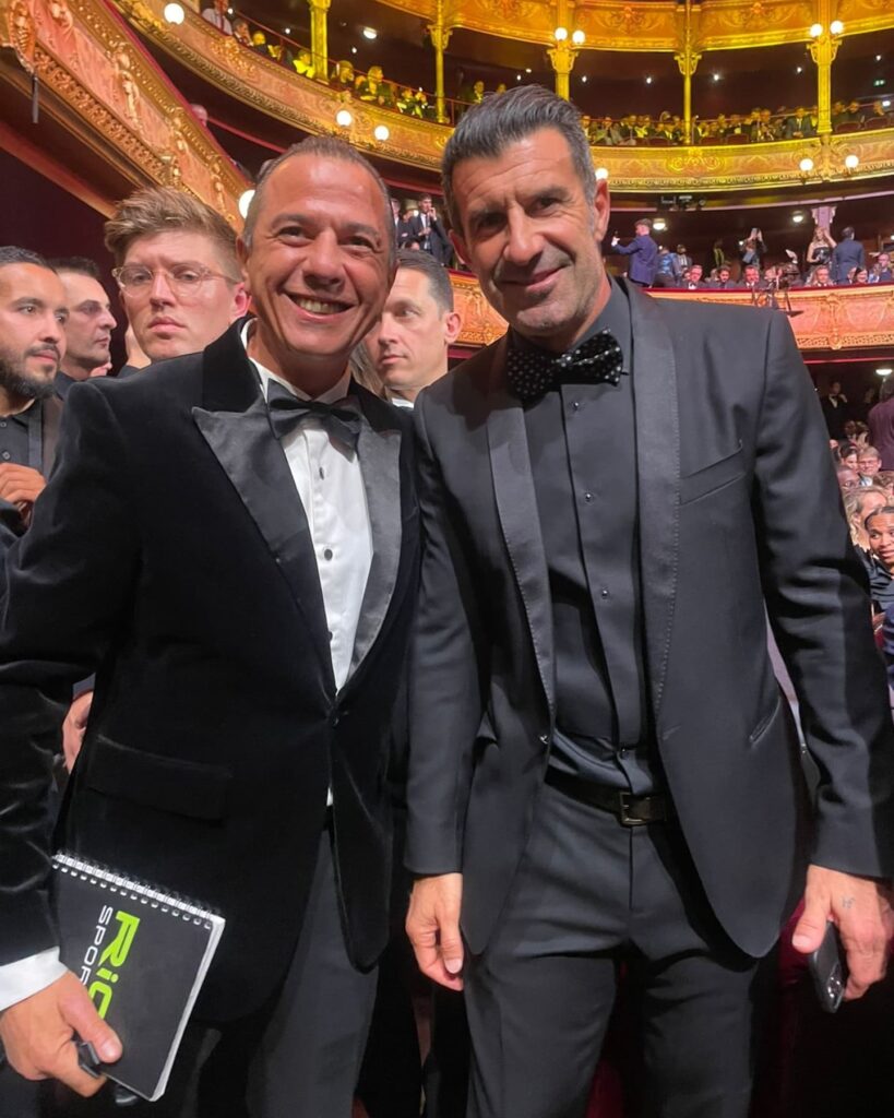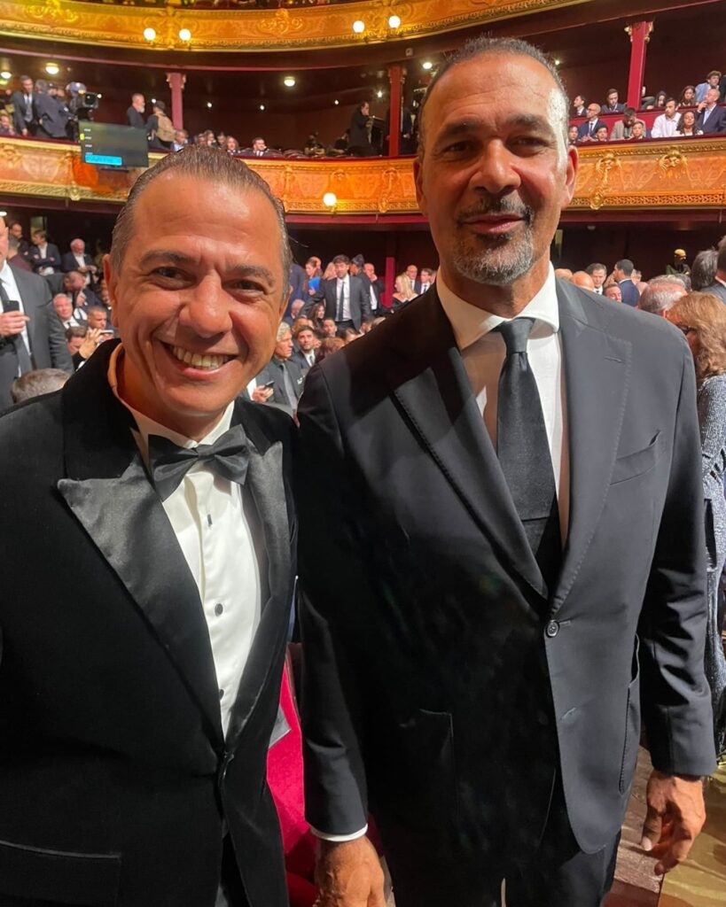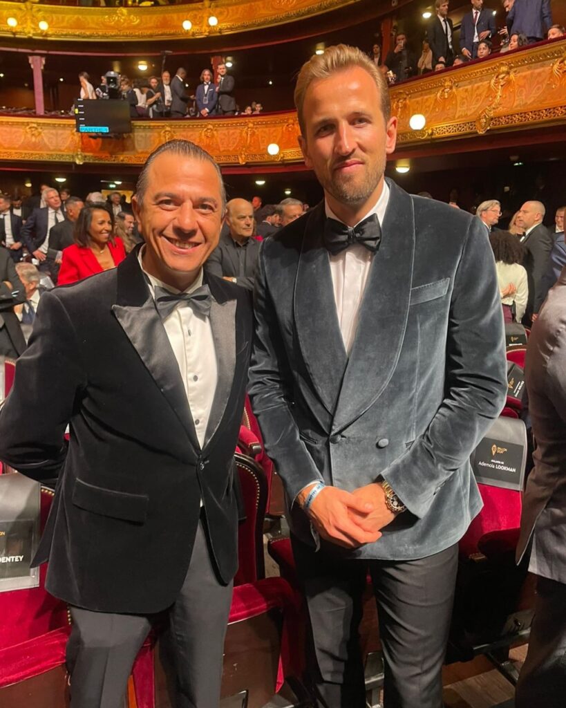 Mohamed Talaat, founder of Rio Sports Magazine, with Harry Kane at the Ballon d’Or ceremony,Luis Figo, Joan Laporta and Cafu. What an iconic moment in sports!