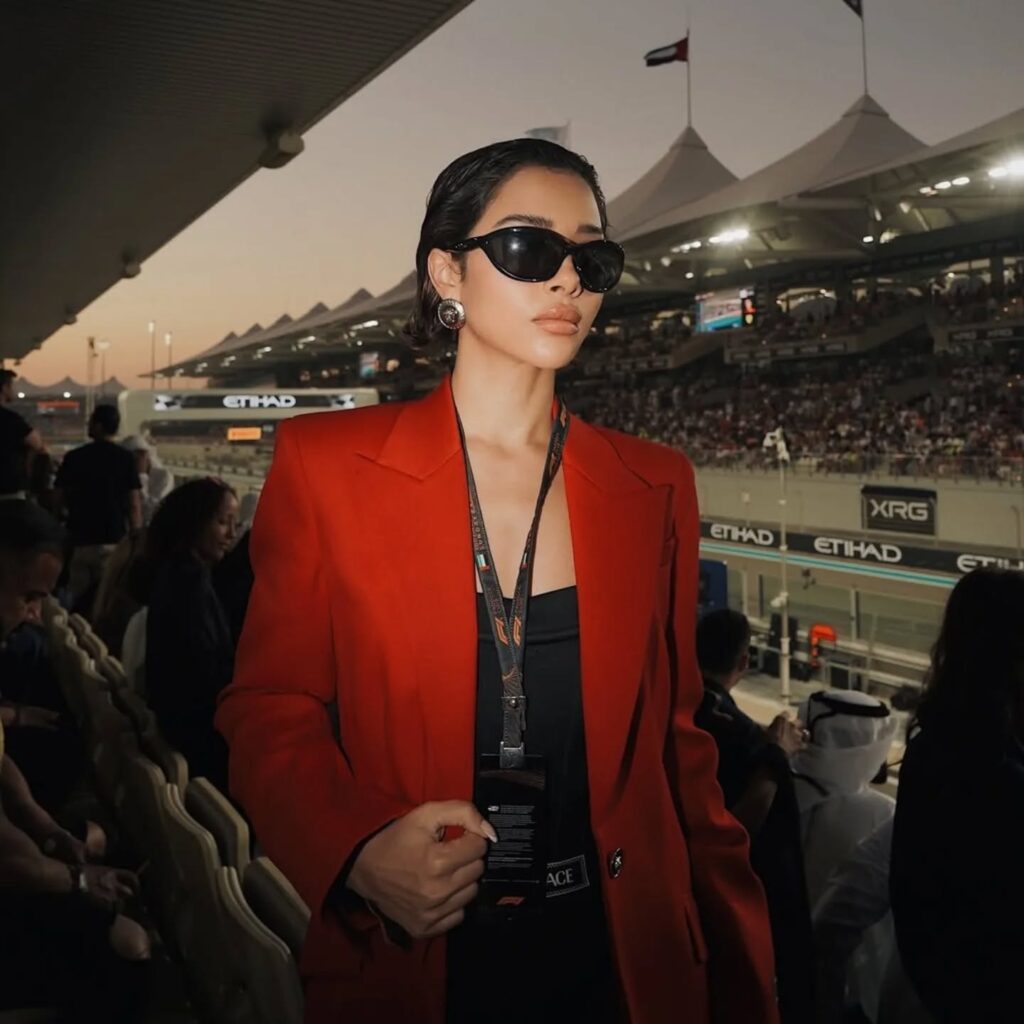 The ever-stunning Balqees Fathi was a vision of elegance at the Yas Marina Circuit, Yas Island, where the weekend’s high-octane energy blended seamlessly with star-studded glamour. Known for her impeccable style and magnetic presence, Balqees looked radiant as she graced the event in a chic and sophisticated ensemble that perfectly captured the spirit of the occasion.