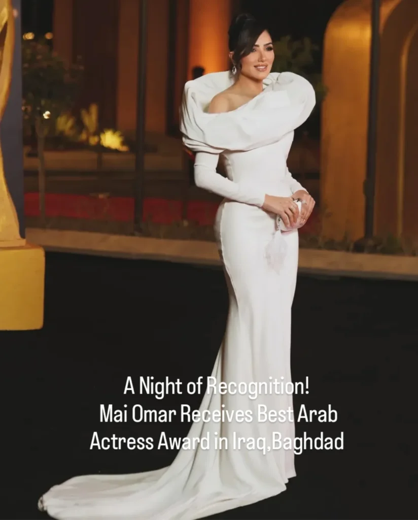 Mai Omar shines in Baghdad! Honored with the Best Arab Actress award in Iraq, she continues to captivate audiences across the region. A well-deserved recognition for her talent and dedication!