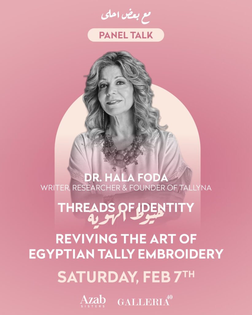 Join us for an inspiring panel talk with Dr. Hala Foda @halafoda — writer, researcher, and founder of Tallyna @tallyna_by_hala — as she shares her journey of reviving tally embroidery and empowering the women who keep this tradition alive.