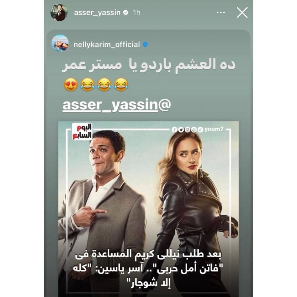 The two mega stars @nellykarim_official and @asser_yassin, are promoting their new series @suitsarabiaa and @fatenamalharbi, on their own way.