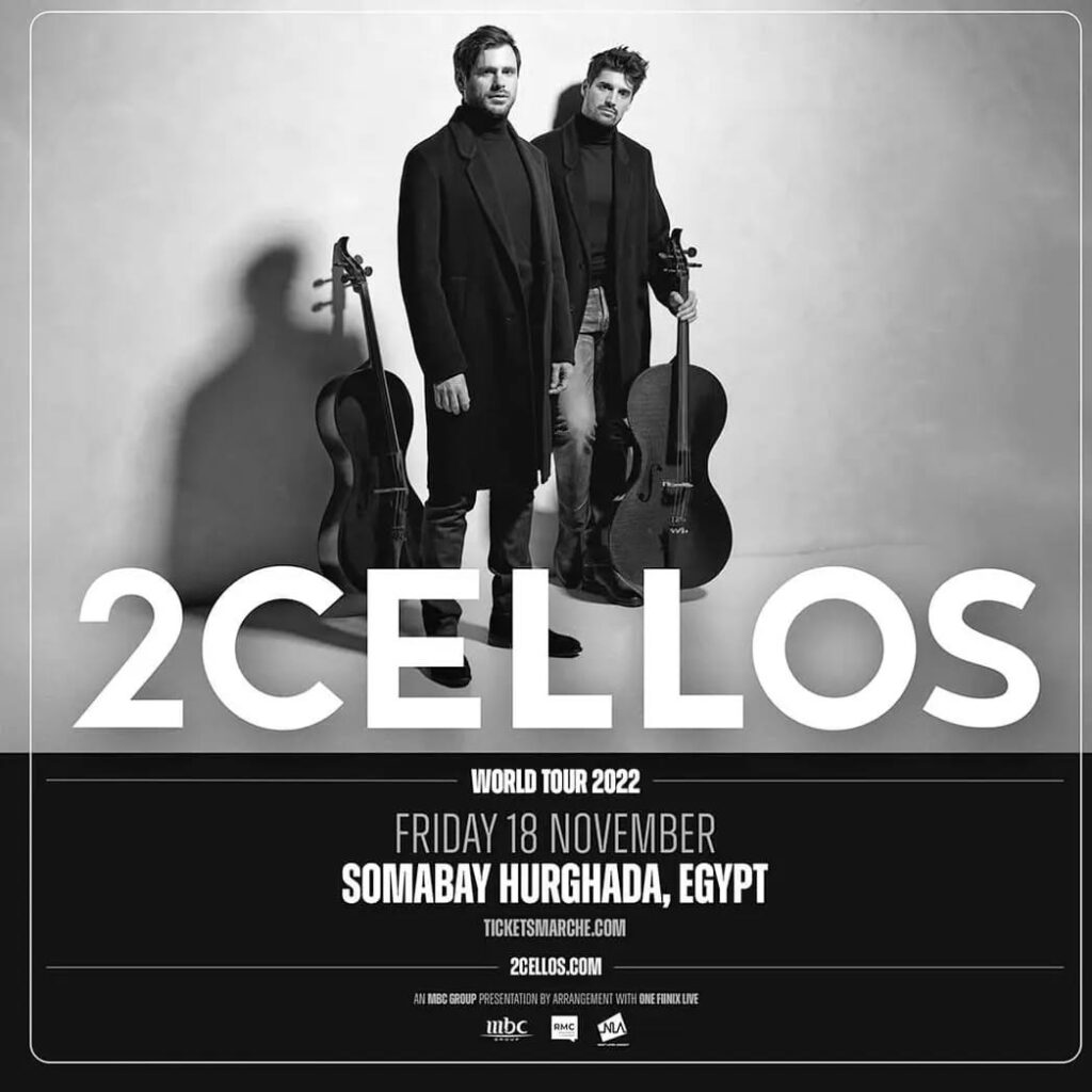 @2cellosofficial Amazing Croatian cellist duo will perform in Egypt for the first time on November 18th @somabayredsea as part of their 2022 World Tour.