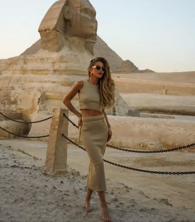 Gorgeous International Public Figure @majamalnar seen at The Great Pyramids of Giza enjoying herself amidst Egyptian wonders.