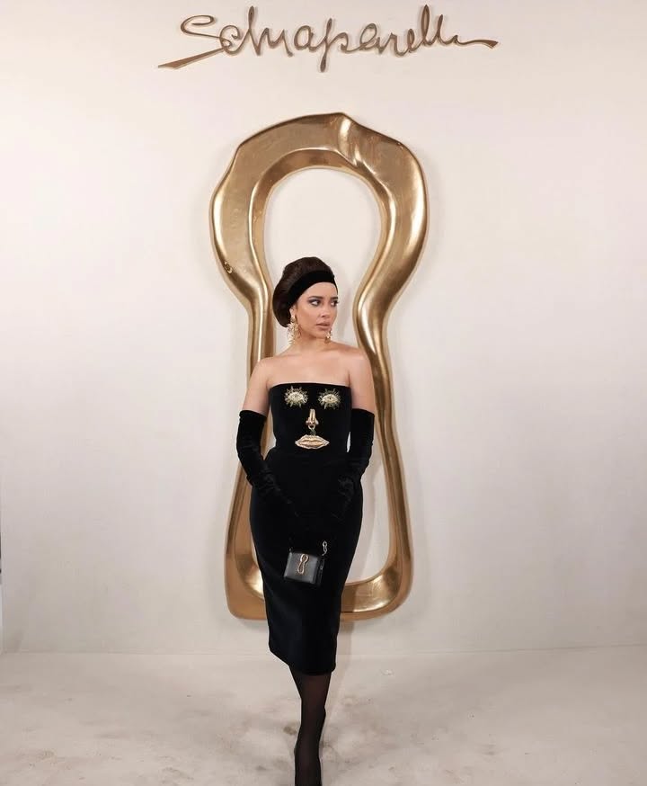 Stunning @balqeesfathi earlier today at the #schiaparelli show in Paris for #parisfashionweek.