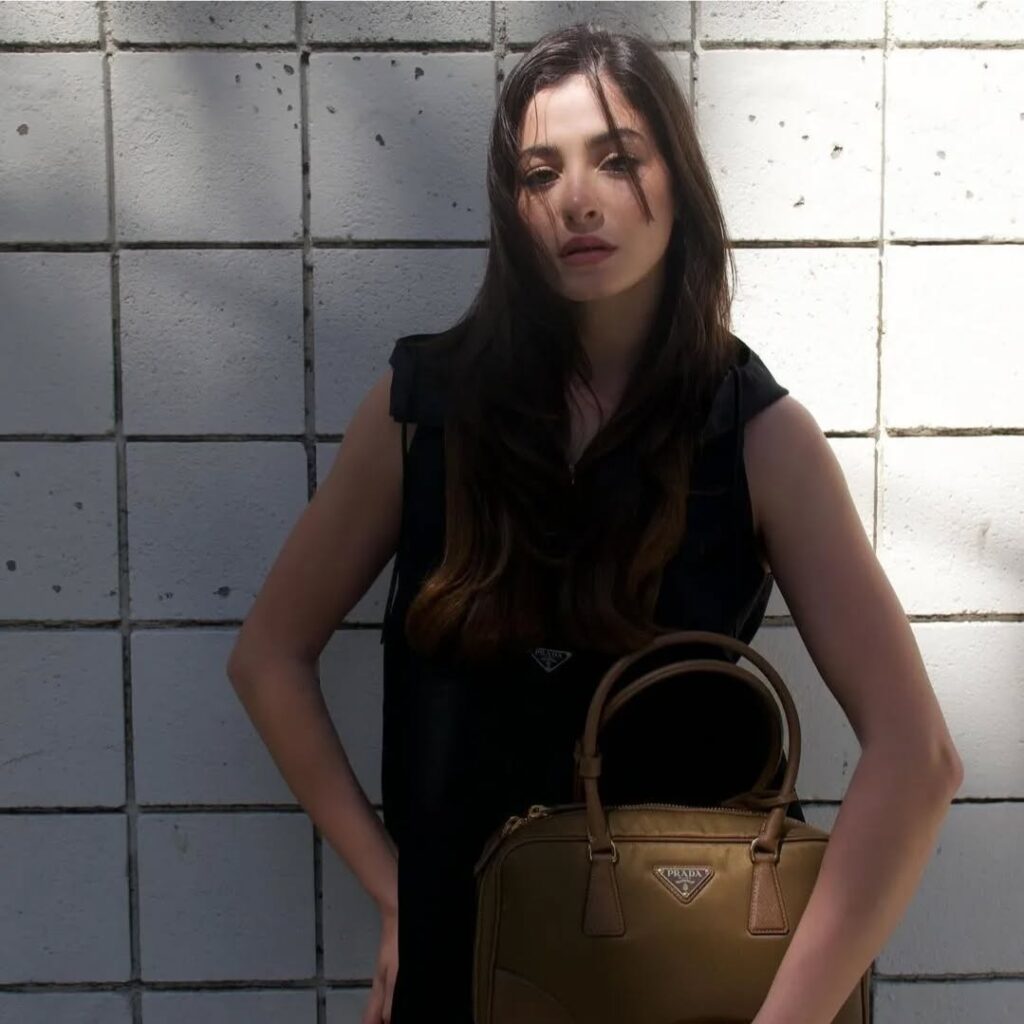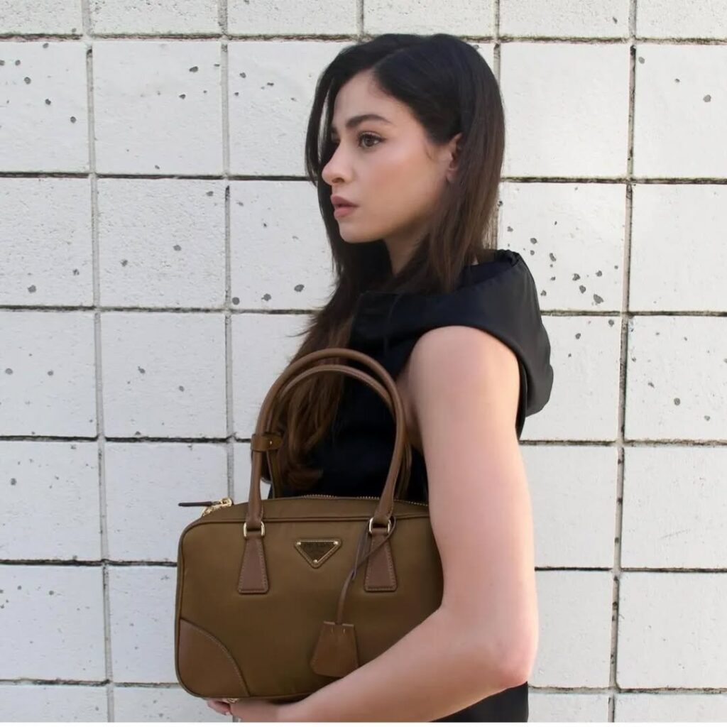 Confidently rocking the new Prada Re Nylon bag in style with Yusra Mardini.